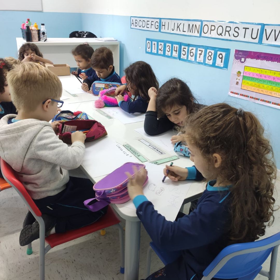 Eles são recebidos pela professora com cantos de jogos e brincadeiras (matemáticos, letras e faz de conta). Desenvolvemos projetos de interesse da faixa etária que contemplam todos os objetivos estabelecidos pelo MEC, aulas de música, inglês, horticultura, projetos maker etc. Atividades para o desenvolvimento motor global e fino, contato diário com letras, números, para desenvolver o letramento. Maternal, Jardim I, II e III
