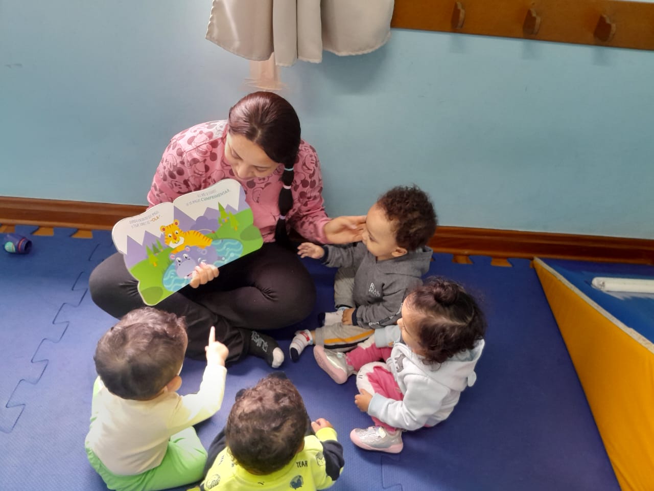Nos primeiros dias troca de experiênciasa com a família é fundamental, saber sobre hábitos, horários, rotina etc. são de suma importância para que possamos seguir na adaptação da melhor forma possível. Aos poucos inserimos o bebê em nossa rotina, sempre respeitando sua individualidade. Eles são recebidos no portão pelas berçarista, iniciam o dia com brincadeiras e jogos direcionados para a faixa etária, realizamos atividades psicomotoras, sensoriais , experimentação culinária, rodas de música e conversa para estimulação da linguagem oral e as aulas de música estão dentro da nossa grade curricular. Além de diversas atividades com objetivos claros estabelecidos pelo MEC.