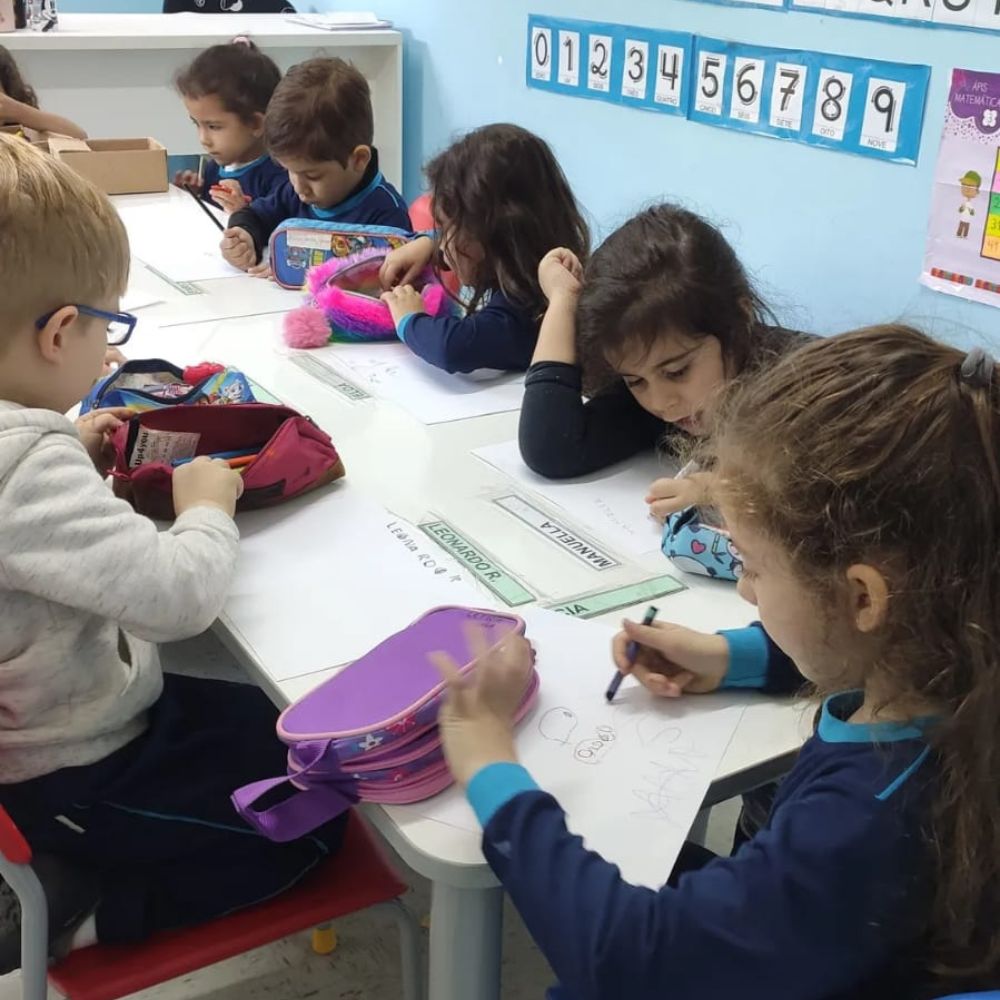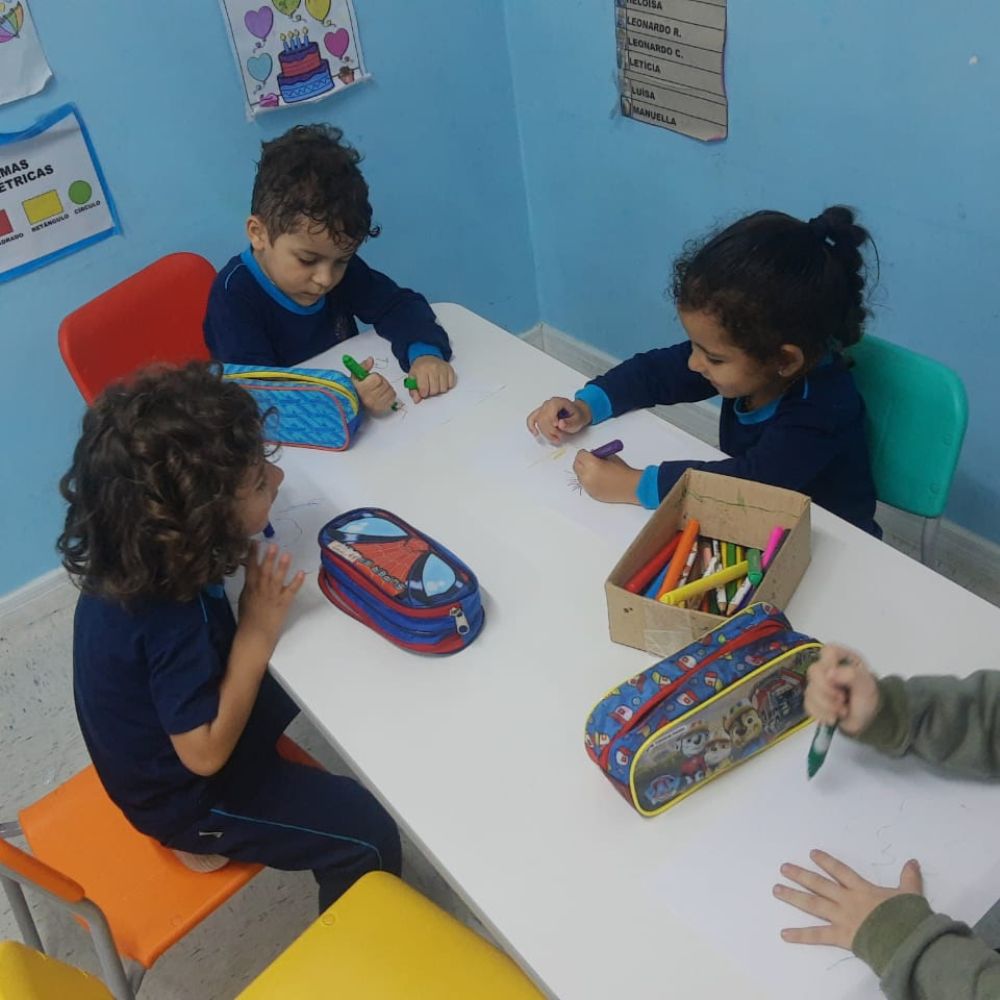 Eles são recebidos pela professora com cantos de jogos e brincadeiras (matemáticos, letras e faz de conta). Desenvolvemos projetos de interesse da faixa etária que contemplam todos os objetivos estabelecidos pelo MEC, aulas de música, inglês, horticultura, projetos maker etc. Atividades para o desenvolvimento motor global e fino, contato diário com letras, números, para desenvolver o letramento.